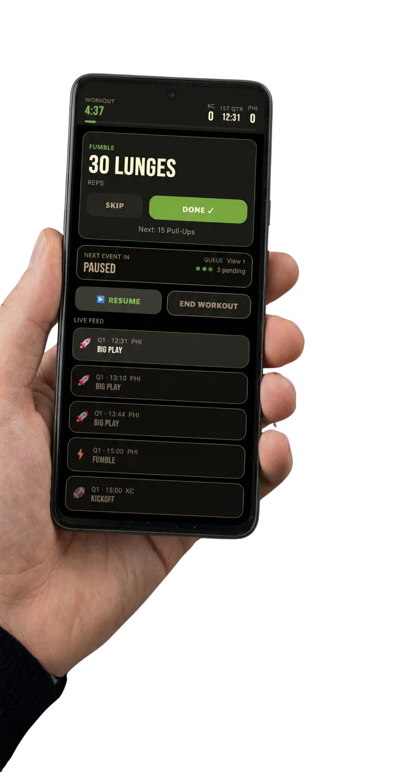 Play Action bridges the gap between sports fandom and physical fitness by automatically activating workout exercises based on live and recorded sports broadcasts across multiple leagues and sports.